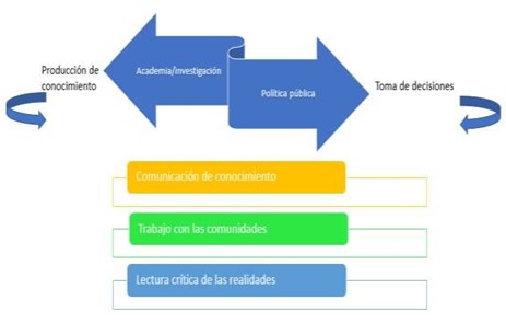 La política pública como ámbito de decisión colectiva supone un mundo de complejidades que abarcan el orden social, político, económico, cultural y retan a la academia21 como lectora crítica de las realidades sociales y políticas de las naciones y por ende, demanda a la academia, y a los investigadores para que cuestionen todas aquellas certezas instauradas en una sociedad, y planteen posturas para la dignidad humana.