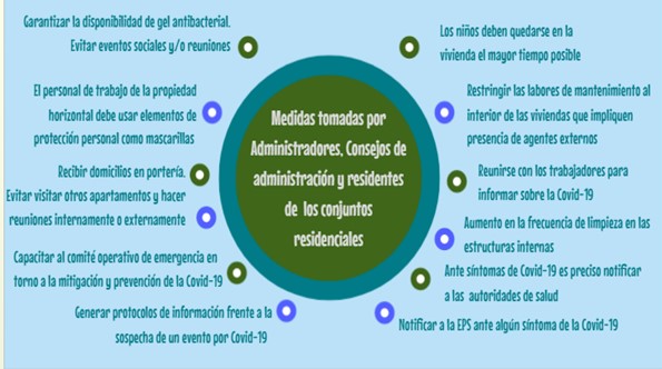 Siguiendo el hilo, es menester distinguir que estos conjuntos acogen las medidas expedidas por la Alcaldía Mayor de Bogotá (2020a), para la COVID-19, las cuales se describen a continuación: