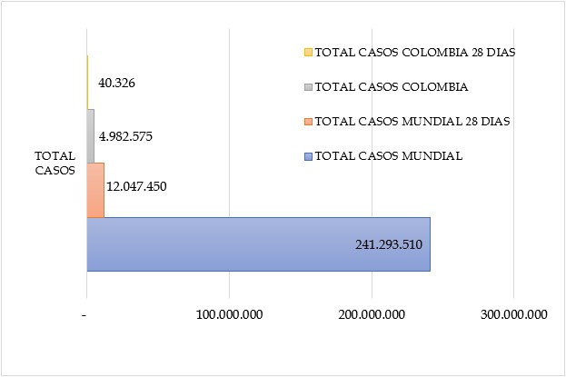 Según cifras del Centro de Ciencias e Ingeniería de Sistemas (CSSE, 2021) de la Universidad Johns Hopkins, son 241 millones de personas infectadas por SARS-CoV-2 y 4.908.879 muertos registrados en todo el mundo. Además de las consecuencias de la pandemia y otros factores sociopolíticos y económicos, según la CEPAL (2020) se estima que un total de 209 millones de personas pobres ascendería al terminar el año 2020, esto significa 22 millones personas más que el año anterior. (Ver Figura 2 y 3). Panorama que contrasta con la descripción poética que realiza Barba-Jacob (2011) en Canción de la vida profunda cuando con cierta musicalidad vocal expone en unos de sus versos que "Hay días en que somos tan móviles, tan móviles, como las leves briznas al viento y al azar... Tal vez bajo otro cielo la Gloria nos sonría... La vida es clara, undívaga, y abierta como un mar…".