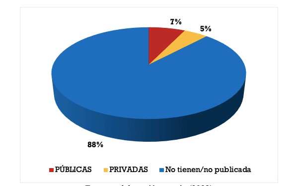 Algo similar ocurre con las políticas de género universitarias (PGU); su panorama general no es tan alentador ya que de las 83 universidades asociadas al ASCUN (Asociación Colombiana de Universidades) sólo 10 parecen tenerlas porque están referenciadas explícitamente en sus páginas web oficiales (Álvarez-Henao, Galeano-Cadavid y Arias-Rodríguez, 2021). En la Tabla 1 se puede apreciar la universidad y el año de creación2 de las PGU; en la Figura 1 el porcentaje de universidades públicas y privadas en Colombia que poseen actualmente PGU.
