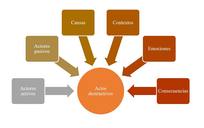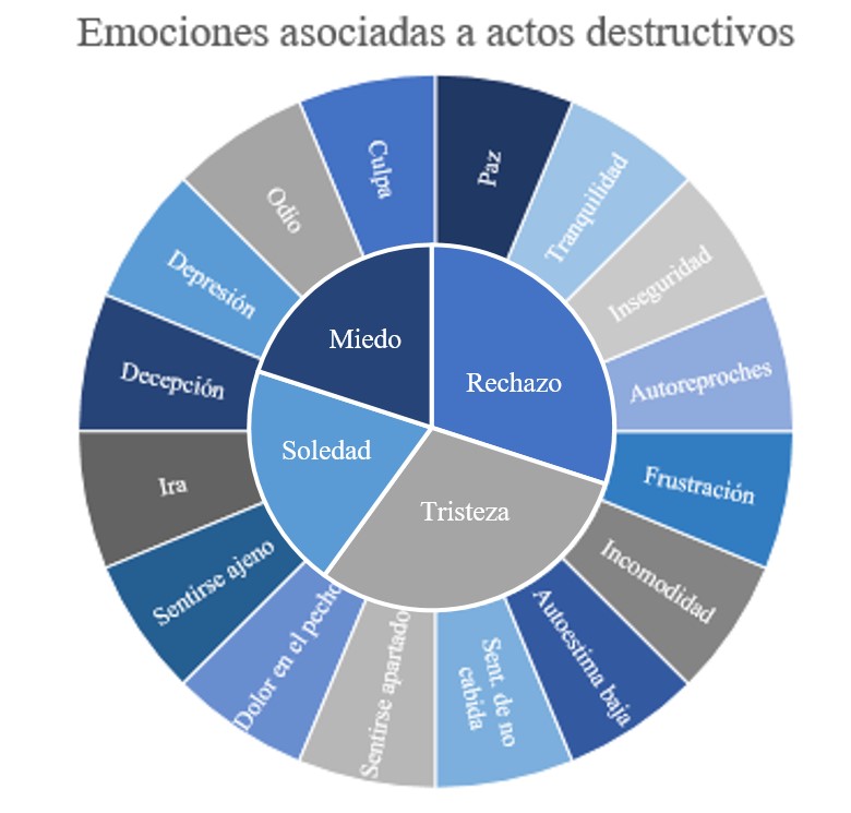 Propiamente en la investigación, los actos de exclusión violentos y crueles se consideraron “actos destructivos”, asumiendo como equivalente el concepto de “emociones destructivas”, utilizado por Goleman (2003) en diálogos con el Dalai Lama.