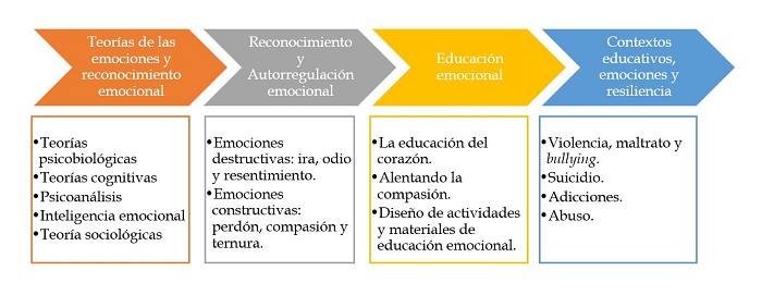 El proyecto en términos generales fue pensado curricularmente de tal manera que los estudiantes adquirieran ciertos conocimientos teóricos sobre las emociones y prácticos sobre cómo identificarlas, expresarlas y ayudar a otras personas a hacerlo de una forma didáctica y en clave pedagógica, como se evidencia a continuación: