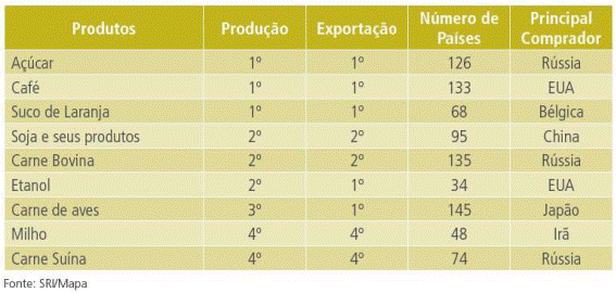 Ao se refletir sobre o campo brasileiro, essa realidade se acresce com as diversas alianças que se estabelecem entre os proprietários rentistas e grandes empresas de capital internacional, através da fusão de grandes grupos econômicos que atuam no campo brasileiro e que buscam se apropriar de quase toda produção gerada para agregar a essa valor. O destaque da produção do agronegócio brasileiro em relação à produção mundial pode ser observado no quadro 1.