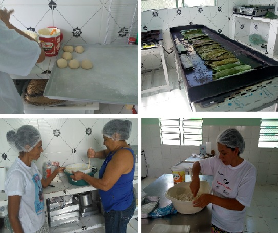 Apesar da redução das encomendas, as mulheres ainda trabalham na produção de pé-de-moleque, queijadinha, cocada, beiju, bolos, bolachas e alguns pães (figura 01). Além disso, a maior parte dessa produção é destinada a Cooperativa dos Produtores Agrícolas do Sul de Sergipe (COOPATSUL) e outra parte são enviadas para a Prefeitura Municipal de Salgado, que adquire os produtos via Programa de Aquisição de Alimentos (PAA). Dessa maneira, as mulheres também buscam comercializar seus produtos, quando podem, em feiras públicas, eventos acadêmicos e de agroecologia. Com isso, a renda adquirida pela produção é viabilizada para a manutenção da fábrica (pagar contas de água, energia, gás, fornecedores, comprar produtos de limpeza e reabastecer o empreendimento) e outra parte é distribuída entre as associadas.
