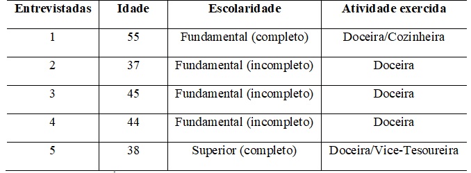 O perfil socioeconômico das entrevistas caracteriza um ambiente de poucas oportunidades e de acesso aos serviços básicos de reprodução social, como educação. Sendo assim, Vasconcelos (2007, p. 222) salienta que “além da diversidade de experiências laborais, a exigência de qualificação do mercado tem marcado a luta pela sobrevivência nesses espaços solidários”. Por isso, apenas uma das associadas chegou a concluir o ensino superior (em Serviço Social), sendo esta que atualmente responde legalmente pelo funcionamento da fábrica. Além disso, esta associada é a única que participa do movimento de Economia Solidária em Sergipe, enquanto que as demais estão envolvidas com a atuação sociopolítica no Sindicato de Trabalhadores Rurais e no Movimento de Agricultores Familiares do Município de Salgado.