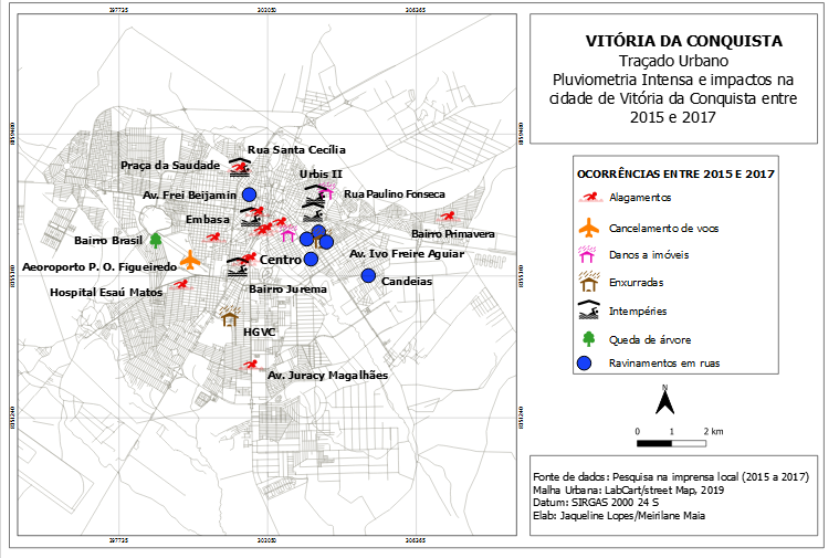 MAIA, M. R. LIMA, E. M; PINTO, J. E. S. de S. Riscos e conflitos socioambientais em episódios de enxurradas e alagamentos em Vitória da Conquista- Ba. In: XII Encontro Nacional da ANPEGE, Porto Alegre – RS. Anais [...] Porto Alegre-RS, 2017.v.1, p. 12644-12653.