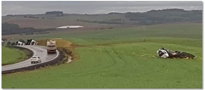 Já no município de Coxilha/RS, os estragos também foram grandes, principalmente na comunidade do Rio do Peixe. Pesquisas apontam que ocorreu o tornado mais violento e severo, considerando-se a queda e a destruição de algumas matas ciliares, tombamento de três caminhões na ERS-463, em que um deles foi arremessado para dentro de uma lavoura(Foto 3). Nessa mesma região algumas propriedades e sítios foram afetados, condenando silos e galpões que eram depósitos de algumas colheitas, ocorrendo então a perda de safras como soja e trigo(Foto 4).
