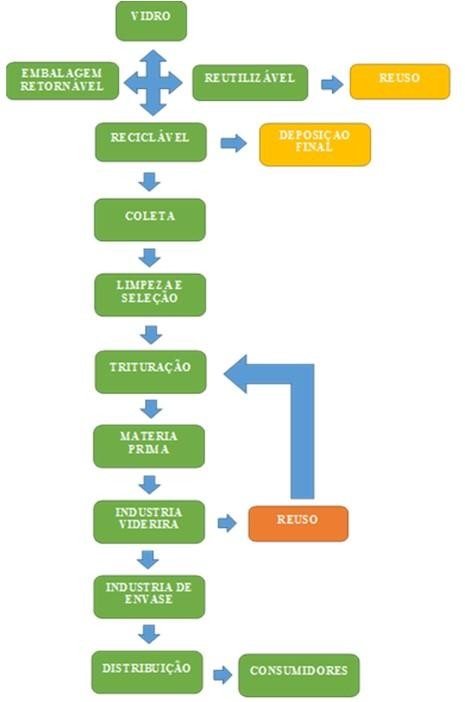 O principal mercado desses recipientes é formado pelas vidrarias, que compram o material de sucateiros na forma de cacos, ou recebem diretamente das campanhas de reciclagem dos municípios. Devido ao peso, o custo do transporte é uma das principais dificuldades para a reciclagem (DIAS; CRUZ, 2009), em sua maioria, são elementos facilmente encontrados na natureza e, em parte, renováveis. Já a garrafa PET é feita basicamente de plástico, derivado do petróleo, fonte não renovável e emitente de gases de efeito estufa.