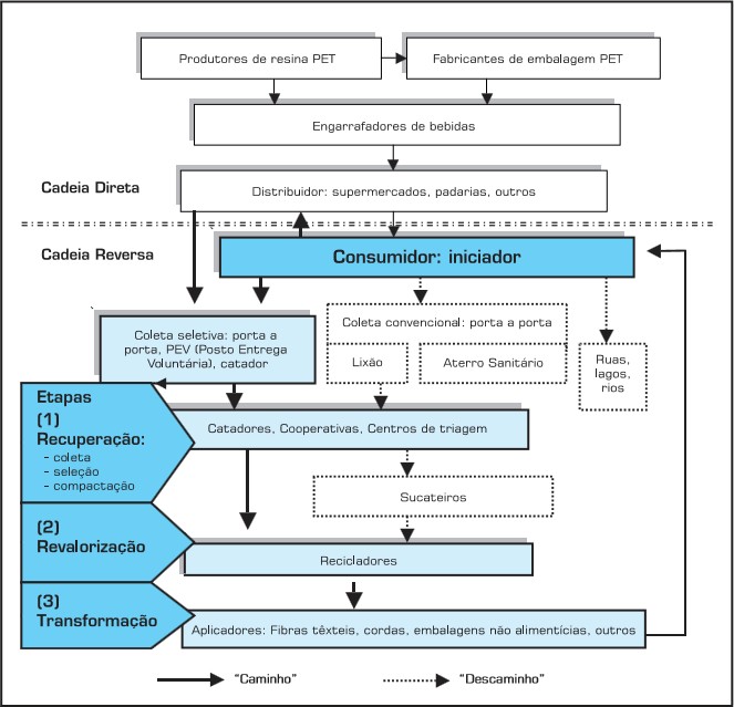 Pensando nestas e em outras questões, esse artigo tem como escopo a análise comparativa do retorno ambiental dado às garrafas Pet e pelo Vidro para a sociedade soteropolitana. A pertinência teórica advém da necessidade de este ser mais um estudo na área em questão que procura descrever elementos de um presente que possam fomentar num futuro próximo políticas públicas de incentivo à cultura de retorno ambiental nas indústrias e na própria sociedade. Já a relevância prática acarreta os próprios objetivos específicos que norteiam o trabalho, já que será traçado o aproveitamento das garrafas de vidro e de PET pela sociedade soteropolitana, assim como o perfil resumido das cooperativas recicladoras de garrafas de PET e de vidro na cidade de Salvador com o intuído de saber quais são as condições de estocagem e beneficiamento desse material. Por fim, critica-se o retorno ambiental dado às embalagens PET e vidro à sociedade soteropolitana pelas empresas produtoras, além de pontuar os desafios para implantação de um processo de Logística Reversa junto às cooperativas analisadas, CAEC e COOPEBRAVA.