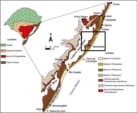O município de Mostardas está localizado na Província Geológica da Planície Costeira do Rio Grande do Sul/Brasil. A qual é constituída, em parte, pela Bacia de Pelotas, segmento meridional das bacias marginais que compõem a margem continental brasileira.Assim, salienta-se que o desenvolvimento das regiões costeiras é condicionado pela dinâmica global e pela dinâmica costeira.