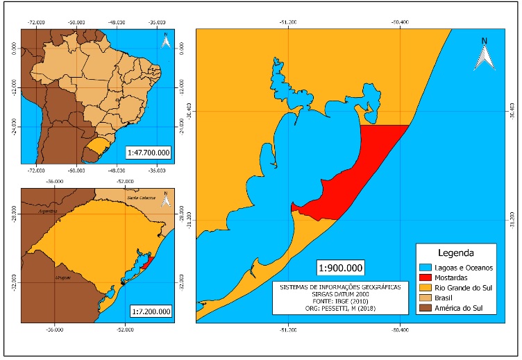 Salienta-se que os dados geradores de impactos são norteados pelo Conselho Regional de Engenharia e Agronomia do Rio Grande do Sul (CREA-RS),nos quais foram levantados os principais impactos ambientais,a serem analisados a partida referida tomada de decisão de implantação do concurso fotográfico. Mostardas-RS-BRASIL,está localizado a 31º 06' 25" latitude sul e a 50º 55' 16" longitude oeste, estando a uma altitude de 17 metros, possui área de 1.982,992 km². (Figura 1).