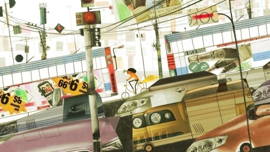 Ainda, as conversas entre os personagens do filme apresentam uma característica peculiar, Alê Abreu coloca a reprodução dos diálogos que acontecem em sentido inverso, tornando-os incompreensíveis. De modo a não limitar a atenção apenas ao imagético, há uma simplicidade com os efeitos sonoros, pois quase todos os elementos e ações carregam uma sonoridade (automóveis,ações dos personagens, animais, chuva, objetos, etc.). Para além, até então, todo o filme pode ser utilizado para discutir o conceito de paisagem pelo sentido da visão, conceituado por Santos (1988) como o principal mecanismo de percepção, mas também a partir da audição que mesmo se o telespectador se encontrasse vendado ele possivelmente teria condições de construir as paisagens apresentadas no filme por meio dos sons emitidos.