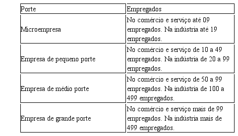 De acordo com Instituto Brasileiro de Geografia e Estatística (IBGE), o capitalismo moderno é caracterizado pela concentração de grandes empresas que têm como fundamento a economia de escala, na qual a rentabilidade aumenta de acordo com a redução do custo do processo produtivo. Contudo, as Pequenas e Medias Empresas conseguiram alcançar um lugar de destaque no mercado, principalmente no segmento de serviços e comércio (IBGE, 2014). Neste contexto, O número de empregados e o faturamento bruto anual são os critérios mais utilizados para definir o porte das empresas, conforme pode ser demonstrado nos quadros abaixo.