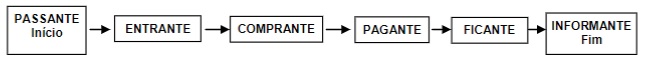 Foxall (1999) partiu de uma análise funcional em que o comportamento do consumidor é o centro nas pesquisas envolvendo as empresas e o consumo. A finalidade da empresa se resumiria em criar e reter clientes servindo-lhes com vantagem sobre as demais empresas em um contexto competitivo de mercado. A partir do comportamento do consumidor, então, uma empresa surge, se estabelece e dele depende sua longevidade. O movimento é iniciado quando o consumidor passasse diante a loja e concluído com a entrada nesta, entendendo que na fase que antecede a compra, entrar na loja é uma etapa necessária. Ele foi baseado na perspectiva comportamental para investigar comportamentos de aproximação a lojas. O fluxograma da figura 1 ilustra a ideia de Foxall (1999):
