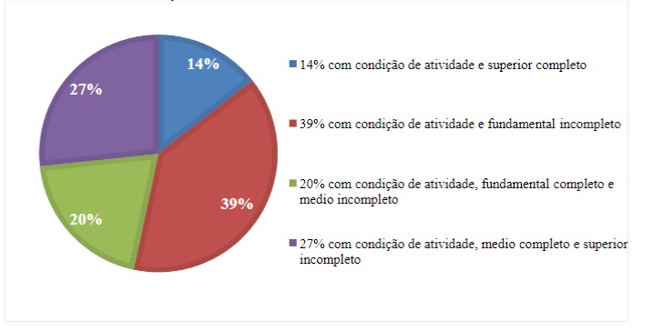 A análise dos dados estatísticos levantados nos bancos de dados online do IBGE e PNUD sobre o emprego e trabalho que utilizamos como amostra os dados dos anos 2010, nos possibilitou ter um conhecimento empírico da realidade social e econômica do objeto em pauta. De acordo com as pesquisas realizadas no IBGE, Censo de 2010, as pessoas com 10 anos ou mais de idade que estavam em condição de atividade, ou seja, estavam trabalhando, possuíam desde o nível fundamental incompleto até o nível superior completo. Entretanto, as pessoas com grau de instrução educacional no nível fundamental incompleto eram a maioria no mercado de trabalho, representando assim um total de 35% dos trabalhadores, e apenas, 13% dos trabalhadores possuíam nível de instrução educacional superior completo, como estáexposto no gráfico nº 1.