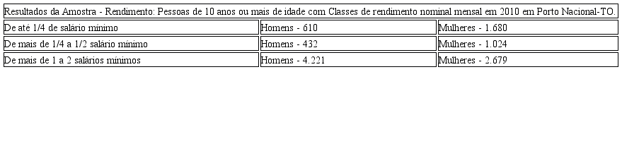 Com relação ao rendimento médio, no item percentual dos ocupados com rendimento médio de até um salário mínimo houve uma queda, no quesito de percentual dos ocupados com rendimento médio de até 2 salários mínimos também houve uma queda. E no quesito de 5 salários mínimos também houve uma queda menor, conforme mostra o Quadro nº 02 a seguir. A queda do rendimento médio representa um fato negativo, lembrando que a maior queda incidiu sobre o rendimento médio de até 1 salário mínimo, o que é uma notícia péssima para o trabalhador de Porto Nacional.