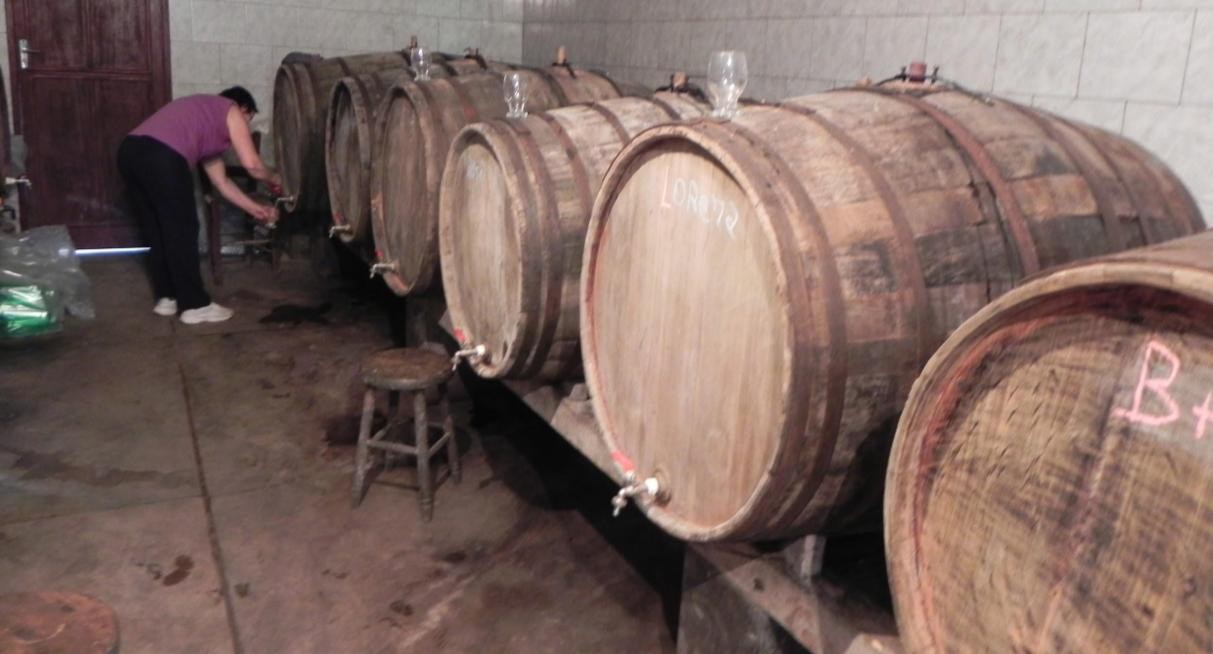 Por esse motivo, o vinho se tornou fonte de renda para algumas famílias rurais do município. O entrevistado A incorpora aos relatos anteriores, “[...] tenho muitos clientes de Santa Maria, eles vêm comprar de mim porque sabem que a uva do meu vinho é dos meus parreirais, muitos dizem que é por isso que é mais saboroso que o do mercado, também adoram beber direto da pipa”(informação verbal)7 , como revela a Foto . Isso se explica na fala de Medeiros; Medeiros e Lindner (2019, p.339), para os autores “[...] o espaço portador de valores socioculturais atua no sentido de enriquecer a identidade do vinho”.