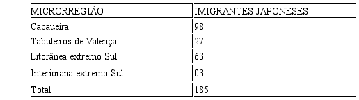 É certo que os municípios de Una, ao sul do estado, de Ituberá, na região do Baixo Sul, de Mata de São João, na região metropolitana de Salvador, ou ainda Caravelas, Teixeira de Freitas, Santa Cruz Cabrália e Jaguaquara, viram nascer nesse contexto Colônias federais, estaduais ou de caráter espontâneo –nesse caso, formadas pelos dissidentes das chamadas Colônias oficiais. Todas elas abrigariam os imigrantes chegados por via das novas relações estabelecidas entre Japão e Brasil, além de migrantes internos (JESUS, 2015, p. 59).