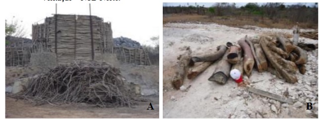 A pecuária está associada diretamente ao extrativismo vegetal, pois, a retirada de madeira antecede ao uso animal promovendo a limpeza total da área, principalmente, na depressão a qual abastace em grande parte a cadeia produtiva de fabricação da cal (painel 2). Nas áreas mais elevadas e inclinadas dos pequenos maciços é comum constatar a presença de rotas de acesso para retirada de madeira, especialmente o Sabiá (Mimosa caesalpinifolia) para produção de estaca, como relata Costa (2015), na serra da Penanduba, inselberg próximo ao campo calcário homônimo.