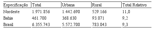 Observa-se que o déficit habitacional na Bahia, de acordo com a Tabela 1 correspondia a 7,26% e 23,4% do Brasil e do Nordeste respectivamente. O município de Vitória da Conquista, de acordo com o Censo de 2010 apresentou um déficit total de 10 793 domicílios, apesar desse déficit estar distribuído por todas as faixas de renda como pode ser visto na Tabela 2, a maior parte estava concentrada na faixa até 3 SM, se for somada a parcela relativa aos domicílios sem rendimentos o total correspondia a 65% do déficit habitacional de Vitória da Conquista. Na mesma tabela pode ser observado que a maior parte desse déficit estava concentrado nas áreas urbanas.