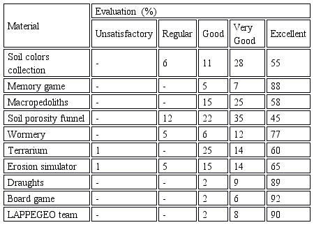 The general purpose is to produce educational materials such as models; maps; macropedoliths; wormery; terrarium; educational kit; pedagogical notebooks; games; flyers; magazines; and, comic books, all of them about the soil. It is easily seen that these materials illustrate different issues – concepts, components, formation process, morphological characteristics – that highlight the importance of the soil, as a natural and essential resource, to sustain life and the earth’s ecosystem.