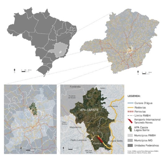 Keywords: Aerotropolis, the Environmental Protection Area (APA, in portuguese) Karst Lagoa Santa, Mining, Metropolitan Region of Belo Horizonte, Project Aerotrópole Mineira.