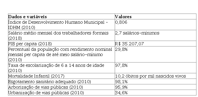 Outras variáveis e indicadores sociais relevantes são apresentadas abaixo, no Quadro 1.