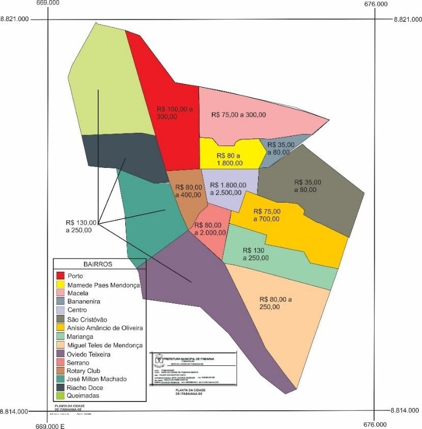 Mediante essa melhoria e mesmo com a crise imobiliário-financeira sofrida no país, ocorreu acréscimo ou mantiveram-se valores na área urbana de Itabaiana, contrariando a tendência do mercado imobiliário nacional. Fato que é expresso na análise comparativa de alguns espaços visualizados em 2008 e hoje consolidados. Dessemodo, o valor do metro quadrado justifica a especulação imobiliária, a partir da agregação de novos espaços, como os loteamentos e as características dos bairros (Planta 02). Apesar dessa persistência no valor do m², uma constante a ser delimitada é a falta de recursos financeiros que movimente o circuito imobiliário, haja vista, ter sido dificultoso a negociação de imóveis já estabelecidos a partir do valor de construção, mesmo os bem localizados. A maior parte das negociações imobiliária tem sido estabelecida com financiamento da Caixa Econômica Federal.