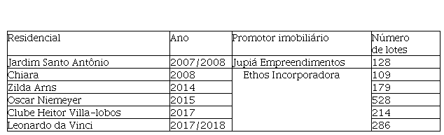 No início do século XXI, o município de Itabaiana passa a seguir a tendência de grandes centros urbanos, com a consolidação de condomínios fechados. No ano de 2005/2006, aparece o primeiro desses condomínios, o Residencial Fernando Peixoto, obra idealizada por comerciante local, o qual funciona com vários apartamentos num mesmo espaço. Além desse, são lançados em Itabaiana outros condomínios (Quadro 1). Tais condomínios enfatizam o poder do monopólio da terra urbana, concentrada em mãos de latifundiários urbanos, que se definem como promotores imobiliários, e acabam, mediante a lógica mercadológica, determinando os valores de imóveis na cidade e por assim dizer, a renda urbana.