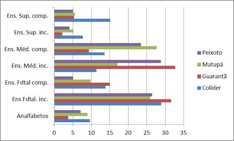 Legenda: Ens.- Ensino; Fdtal - Fundamental; Méd.- Médio; Sup.- Superior; inc.- Incompleto; comp.- Completo.