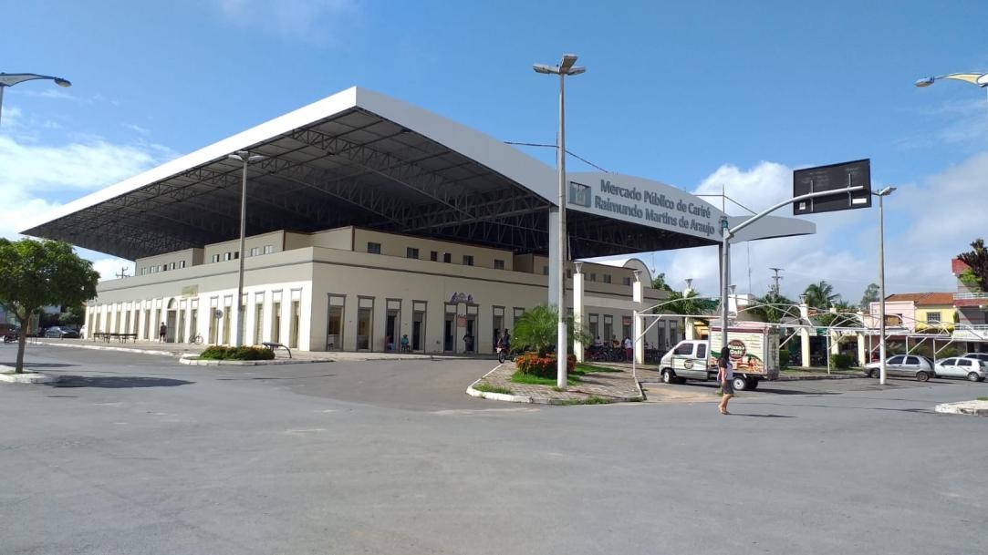 O entorno do Mercado Público Municipal Raimundo Martins de Araújo (figura 02), equipamento comercial robusto e de arquitetura “moderna” que foi reformado no ano de 2013-2014, é onde se localiza a feira da cidade. Como mencionado por Santana (2011), é nos dias de feiras que as pequenas cidades ganham vida. Em Cariré também é assim. Pais, filhos, avós, tios vem da zona rural em direção à cidade para comprar mantimentos e produtos diversos que são oferecidos ali, como: frutas, legumes, verduras, vestimentas, calçados, bijuterias, dentre outros.