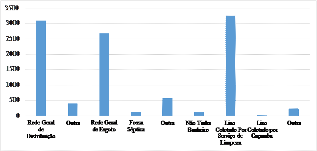 Os levantamentos realizados indicam que na periferia o saneamento básico é precário, a coleta de resíduos sólidos é deficiente, a água de rede tratada é insuficiente. Ante o exposto, inferimos que a ausência/precariedade dos serviços de esgotamento sanitário, coleta de resíduos sólidos, descarte irregular dos mesmos e de efluentes domésticos são causa de impactos degradadores do meio ambiente com efeitos sinérgicos e persistentes. Pesquisando dados de saneamento básico de Ilhéus, destaca-se que até 2010, apenas 65,9% dos domicílios possuíam esgotamento adequado (IBGE, 2010), (Gráfico 1). Passados 11 anos, data dessa pesquisa, constatamos que não ocorreu nenhum avanço nessa infraestrutura em geral.
