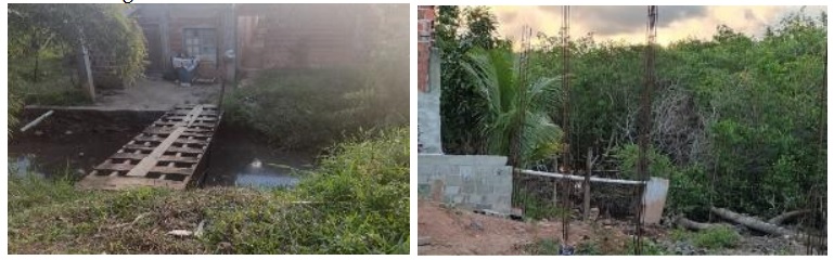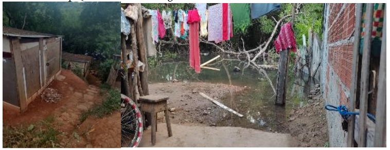 No entanto, ainda que o modelo de esgotamento sanitário por rede geral de esgoto seja predominante no bairro, a coleta e descarte final dos efluentes não ocorre de forma adequada numa parte significativa do bairro, haja vista a quantidade de canais de esgotos a céu aberto identificados em atividades de campo, além da presença de efluentes domésticos lançados diretamente nos canais fluviais, e em vertentes (painel 1), percebe-se, no entanto, que essa realidade está presente nas ruas que ficam às margens do rio, e também nas ruas que foram ocupadas mais recentemente, a exemplo da Favela do Rato formada a partir de uma ocupação irregular na área mais periféricas do bairro.