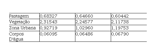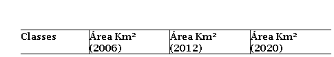 A Tabela 1 apresenta os dados das classes selecionadas por km² dentro da resolução de 15 anos do bairro Teotônio Vilela com uma área de 39.872 km² MapBiomas (2019).