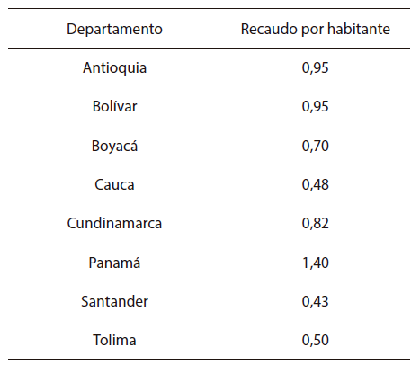 A nivel nacional, las entidades territoriales más ricas en 2015 eran Meta, con 2,4 veces el promedio; Santander, con 2,3; Bogotá, con 1,9; Boyacá, con 1,4; Antioquia, con 1,3; y Valle del Cauca, con 1,2. El triángulo de oro de la protección ha perdido su lustre, aunque no del todo. Las más pobres son Chocó, con 0,5; Nariño y Norte de Santander, con 0,55; Caldas y Sucre, con 0,58; Córdoba, con 0,6; y La Guajira, con 0,63 (tabla 3).