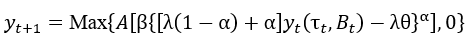 [Ec. 1]The other variables represent technological development , the minimum wage necessary to make intergenerational transfers possible , the share of capital in total output owned by the capitalist class , and the weight or importance that people give to intergenerational transfers .