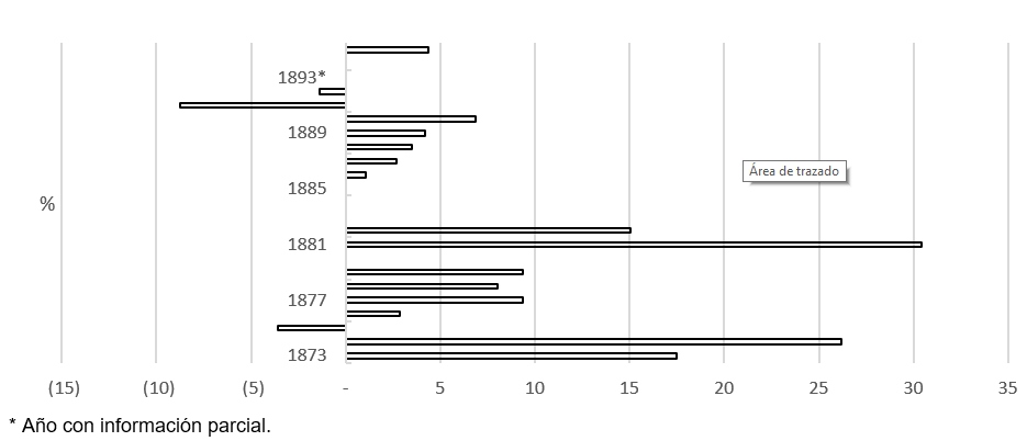 El gasto ejecutado tendió al sobrejercicio del presupuesto. En definitiva, la política que programó los egresos quedó eslabonada y dependiente de los vaivenes del mercado internacional del tintóreo durante el periodo. De esta manera, los gobiernos estatales afianzaban el eventual respaldo financiero de los extractores carmelitas más connotados, tal como aconteció en el decenio de 1880 en medio de la carestía de granos por medio de los créditos que deslizó el magnate Victoriano Niévez, usurero de la región de Carmen, a cambio de eximirlo del pago de contribuciones por una década (Soria, 2020a, p. 143). Así, el gasto programado continuó estirándose durante los años de predomino del partido barandista en el poder estatal (1870-1877),4 incentivado por las estimaciones de las salidas de embarcaciones del insumo textil, y con el afán por parte de la administración gubernamental de no afectar fiscalmente los patrimonios de las familias más pudientes e influyentes de la época;5 pero el gasto efectivo comenzó por superar al programado en una no menor proporción, debido tanto a los relevos políticos, con la asunción de Marcelino Castilla en 1877 y opositor del barandismo, al generarse fricciones y conflictos durante su gestión (Negrín, 1991a, pp. 100-114), como a los problemas en el campo (Quiñones & Salavarría, 2003, p. 151).6 A ello se sumaron los compromisos ferrocarrileros,7 telegráficos y tranviarios que tuvo que sortear y subvencionar su sucesor, el carmelita Arturo Shiels (1880-1883), personaje afín a los intereses del denominado creso lagunero, Victoriano Niévez. El antecedente inmediato era el año fiscal de 1874 con un sobrejercicio presupuestal mayor al 25% amparado en créditos que reconoció Baranda de gobiernos anteriores.8