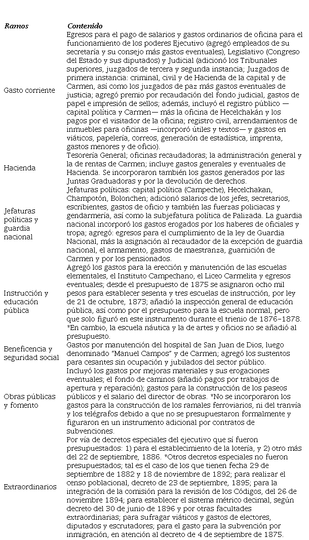 Keywords: public budgets, expenditure, Campeche, economic history.