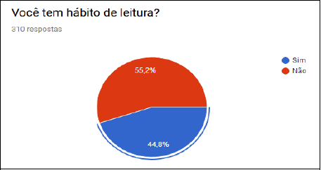 Sobre se os estudantes tem hábito de leitura está muito dividido, embora ainda grande parte não tenha. Com o incentivo da escola eles passaram a ter devido a programação especifica, isso faz com que muito continuem suas leitura em casa, pois entretido com suas leitura buscam acabar logo a leitura para ir atrás de novos exemplarem. Assim como conseguem ver a importância da concentração para esse momento e como fica mais fácil reter conhecimento. E principalmente são incentivados a criar o hábito da leitura que pode se estender a outros ambientes e também a ter uma rotina de estudo.