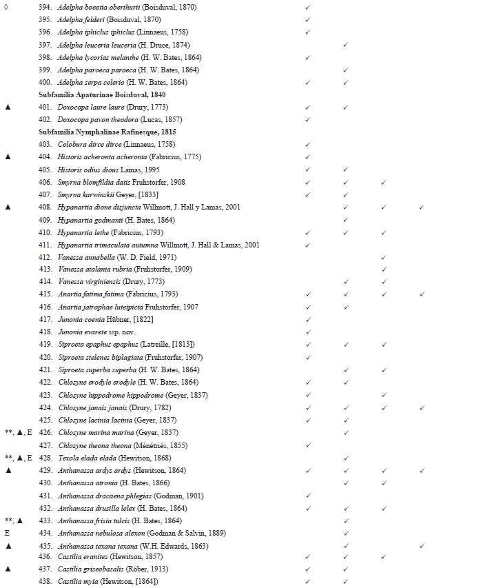 Lamas, G. (2004). Checklist: Part 4A, Hesperioidea - Papilionoidea. Scientific Publishers, Gainesville, Florida). Atlas of Neotropical Lepidoptera, 5, 261-274