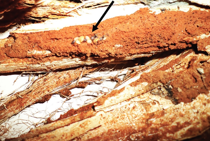 Esta investigación incrementa los huéspedes para las especies de Termitaradus y diversifica el hospedero (Termitidae), que se pensaba estaba relacionado únicamente con Termitaphis. Las especies de Termitaradus, previamente a esta investigación, se pensaba que solo cohabitaban en los nidos de Rhinotermitidae, particularmente con los géneros Coptotermes (Coptotermitinae), Heterotermes (Heterotermitinae) y Rhinotermes (Rhinotermitinae) (Grimaldi & Engel, 2008) (Usinger, 1942). T. poleoae sp. nov. fue colectada en un nido de Amitermes foreli Wasmann (Termitidae: Termitinae). Los ejemplares de T. poleoae se encontraron apiñados con obreras en los pasadizos del nido, en la raíz de la planta.