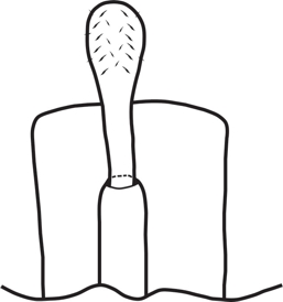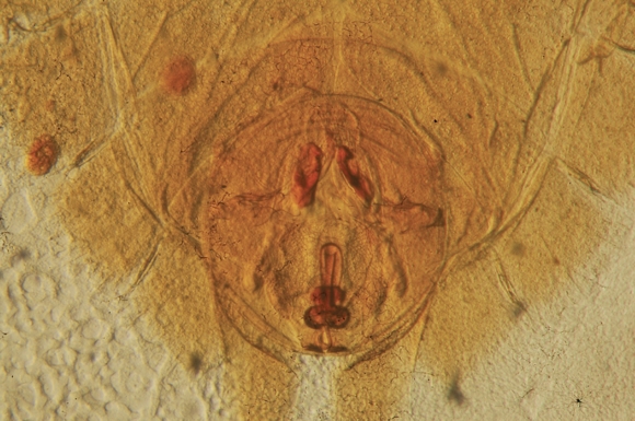 Genitalia: En el terguito abdominal IX con pigóforo (Fig. 7) que contiene al phallus con las estructuras genitales internas, como los stylus, el conectivo, el proceso capitado, y el aedeagus (Yang 2004).