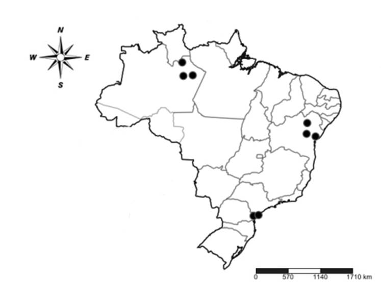 Distribution (Fig. 9). Brazil (States of Amazonas, Bahia, São Paulo and Paraná) (Bravo et al., 2006; Cordeiro et al., 2011).