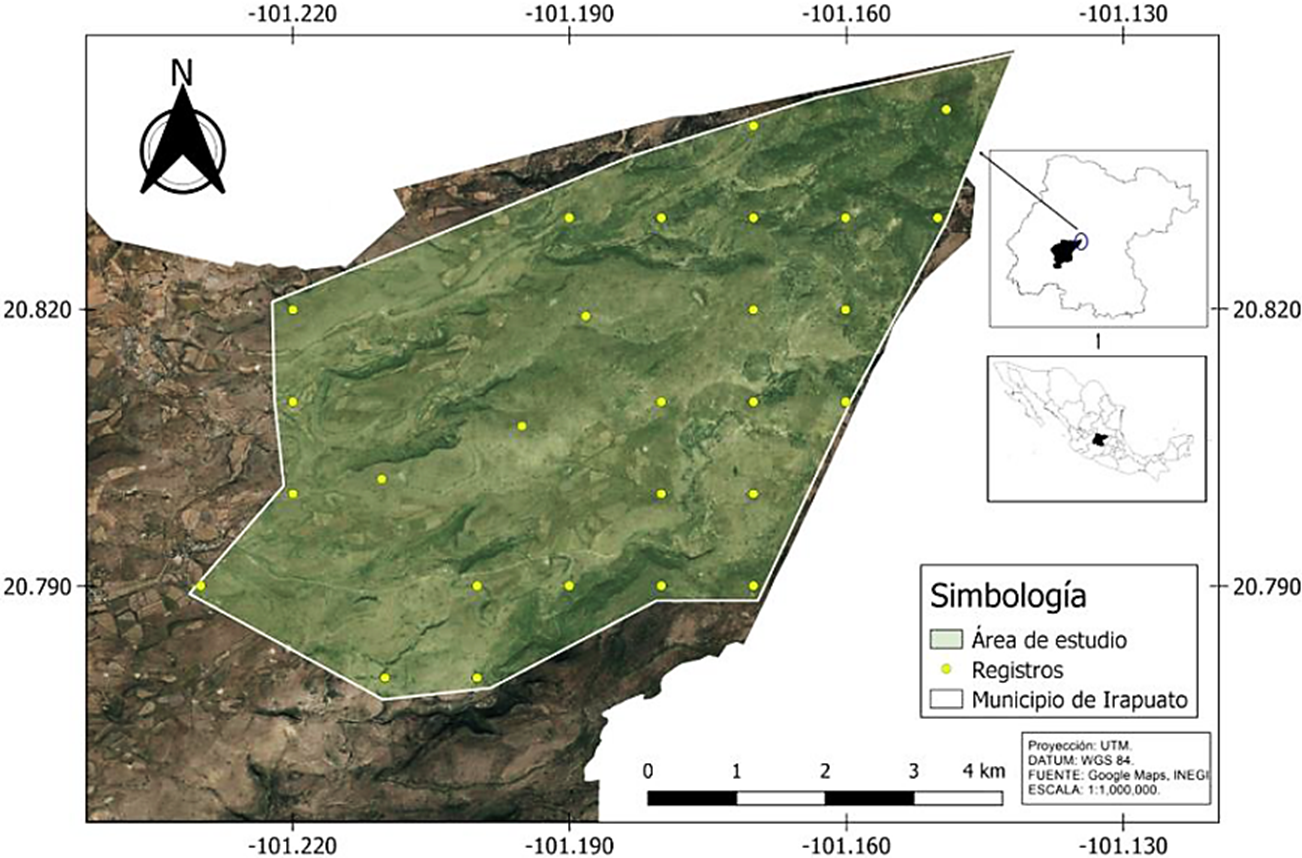 A los habitantes de la comunidad de El Garbanzo, municipio de Irapuato. A Francisco Alejo Iturvide, Fernanda Rodríguez Gutiérrez, Carmen G. Mendoza Portilla y Ruth Liliana González García por su apoyo y colaboración durante el desarrollo del trabajo de campo. A la Dirección General de Vida Silvestre (DGVS) de la Secretaría del Medio Ambiente y Recursos Naturales (SEMARNAT) por el otorgamiento del permiso para colecta científica SGPA/DGVS/06622/13. Así mismo, queremos agradecer a los revisores anónimos que con sus comentarios enriquecieron la calidad de este trabajo.