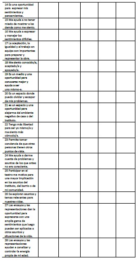 Palabras clave: teatro en la educación, jóvenes, instrumento de medida, artes escénicas, teatro aplicado.