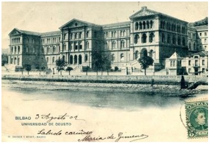 The fifth aspect is closely knitted to content or subject matter of first picture postcards issued in Spain, or about Spain, at the end of the nineteenth and early twentieth centuries. Indeed, a review of these reveals how among the emblematic or historical buildings deemed worthy of being reproduced were, along with those of cultural standing (the Prado Museum, the National Library, the Alcalá General Archives, the Archives of Simancas), welfare education (hospices, foundling homes), some scientific buildings (the Astronomical Observatory, the Metereological Institute), the ancient universities and university colleges (Salamanca, Valladolid, Santiago, Alcalá de Henares, Barcelona, Oviedo, Valencia), some faculties (Medicine in Barcelona and Saragossa), secondary schools (“Jovellanos” in Gijón), academies and schools of engineers or the army (Guadalajara, Madrid, Bilbao, Valladolid), music schools (the municipal school in Barcelona), ecclesiastical seminaries (Oviedo, Santiago, Lérida), private universities (the Jesuit University of Deusto), colleges of religious orders and congregations (the Jesuits of Barcelona, Valladolid, La Guardia and El Puerto de Santa María, “Sagrado Corazón” in San Sebastián, the El Escorial School of Higher Studies), and the state schools built by Indian immigrants like the primary and secondary schools in Guarda (La Coruña). In other words, with no direct attempt at seeking publicity or fame, the very nature of the product leads to a variety of teaching centers and establishments that were deemed meritorious of forming part of that set of monuments or emblematic buildings that should be reproduced in the series of postcards of one city or another. Once the road had been opened there was no stopping the tide of teaching institutions that incorporated the picture postcard into the advertising strategies to announce their prestige.