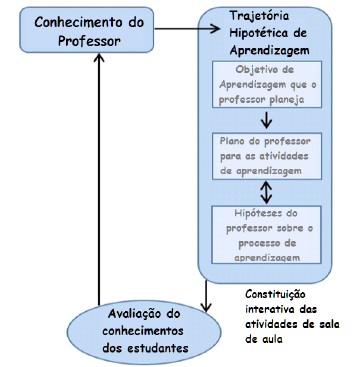 A elaboração de uma trajetória hipotética de aprendizagem “antes do ensino” na sala de aula é um processo pelo qual o professor desenvolve um plano de atividades para ser realizado em sala de aula por seus estudantes. Contudo, ao interagir com os estudantes e observá-los, o professor e os estudantes constituem uma experiência, que pela sua natureza social, é diferente daquela antecipada pelo professor. Nesse contexto, as ideias do professor sobre o conhecimento dos estudantes podem alterar-se e ele tem a possibilidade de modificar a trajetória hipotética de aprendizagem que havia elaborado (Simon, 1995).