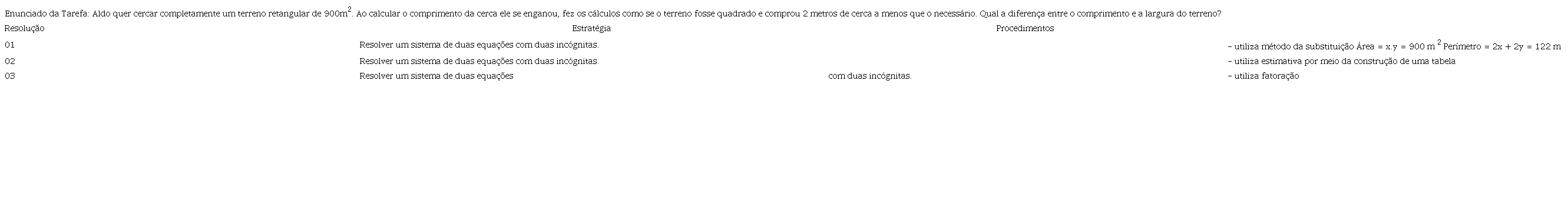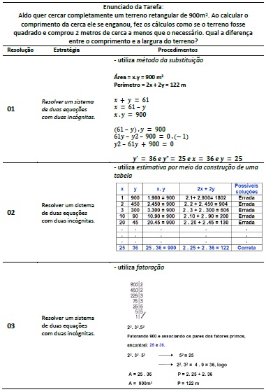 De modo geral, os docentes sujeitos dessa pesquisa apresentaram estratégias e procedimentos da matemática escolar comumente trabalhada na Educação Básica. Estas estratégias e procedimentos se fizeram presentes ao descreverem as resoluções hipotéticas dos alunos dentro de suas THA.