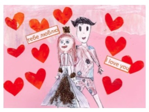 2B: O rei foi embora para as guerras e o mouro e a princesa Beatriz apaixonaram-se. I love you, iá tibiá liubliu, eu amo-te! 2D: Isto é ucraniano, são as letras ucranianas. (Aponta para a palavra em ucraniano) Dinamizadora: É o alfabeto cirílico, não é igual ao nosso. 2B: Pois não. 2D: Mas tem algumas letras iguais. 2C: Sim, é o T e depois o E e o O. Ai, mas o O está ligado aqui a outra coisa, ao H.