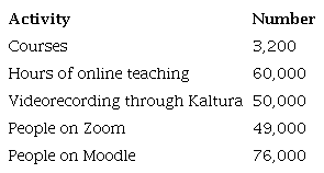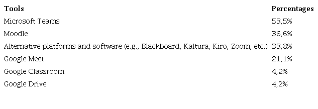 The staff of the digital learning centre equally organised different daily digital workshops, providing support for teaching at any time and for synchronous and asynchronous approaches. In addition, there was a large financial investment and human resources, and many tools have been largely and freely used by faculty and students, thanks to institutional conventions like Moodle, Zoom, Padlet, Wooclap, TopHat, Powtoon, Kaltura and GSuite. The institutional contracts with the providers of the tools have guaranteed multiple tools’ functionalities and data safety. The Digital Learning Centre registered several tools between March and September 2020, as indicated in Table 1, showing proof of the sharp increase in the number of people who used technological tools and services.